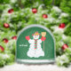 A snow globe with a cute snowman wearing a floppy hat, red mittens and colorful scarf. The images, background and text can be personlaized. Original artwork by W.B.