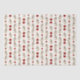Christmas tissue paper with snowmen wearing sunglasses. The snowmen can pass as being made of either sand, or snow. The pattern included dark red, ball, tree ornaments. Choose the size needed for wrapping or stuffing.