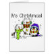 A cute holiday design featuring two snowmen and a penguin dressed in scarves, winter hats, and earmuffs and text that reads It's Christmas on holiday T-shirts, sweatshirts, mugs, bags, cards, stickers, keepsakes, pillows, and much more!