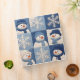 An enchanting pattern filled with delightful snowmen and sparkling snowflakes, beautifully set against a blue and white quilt background