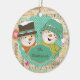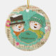 Snowmen and Typography keepsake ornament features a cute and colourful design with typography text background, white polka dots on aqua blue, a snowman couple wearing hats and winter scarves, and an aqua blue banner you can easily personalize with your name!
