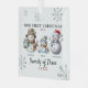 Snowman Family of Three First Christmas glass Ornament for parents who just had their first child with mom, dad and baby snowmen. Our first Christmas as a family of three personalized snowman keepsake ornament. Celebrate your first holiday season as a family with our "Our First Christmas as a Family of 3" ornament, thoughtfully designed for new parents. This adorable snowman family ornament marks the beginning of your family’s journey, capturing the joy and excitement of your first Christmas with your little one.
