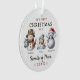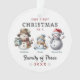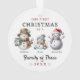 Snowman Family of Three First Christmas Ornament for parents who just had their first child with mom, dad and baby snowmen. Our first Christmas as a family of three personalized snowman keepsake ornament.