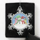 A beautiful and elegant snowflake ornament with the illustration of a snowmen family . © ArianeC Illustrations