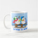 Two snowkids go sledding with their yellow Labrador puppy. Reads: "Snow is more fun with friends!"