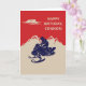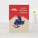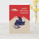 Create a personalized birthday card for your favourite snowmobiler or create the perfect card for any occasion since the text on the front and the inside of this card is ready for your custom touch. This greeting card has a vintage style illustration of a snowmobile and rider in navy blue set against a backdrop of cream or ivory coloured mountains against a red background.