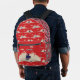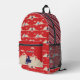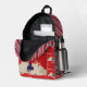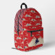 Create a personalized backpack for your favourite snowmobiler when you add their name to this bag. It features a pattern of snowmobiles, snowy mountains and fluffy clouds in shades of blue and ivory or cream set against a red background.