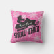 Snowmobile Snow Chick Pink Snowflake Throw Pillow