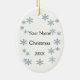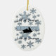 A graphic design of snowflakes and a snowmobile by artist/designer Charmaine Paulson on a Christmas Ornament. The ornament has the text "Let it Snow Minnesota ", and templates for your personalization.