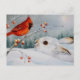 Snowshoe Rabbit & Red Cardinal Bird Watercolor Art Postcard