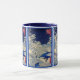 Snowstorm. Beautiful Japanese Print Mug. Meguro taikobashi yūhinooka. (Meguro drum bridge and sunset hill). Print shows people crossing a stone bridge during a snowstorm. This print has been beautifully restored and enhanced by us at Vintage East from a Japanese Woodcut Print created between 1857. We have also added a complimentary border around the image which really makes it an eye catching work of art. We also have this vintage print on other products too.