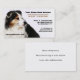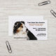 This eye catching pet business card features a very pretty aussie dog laying in the snow. This sweet, purebred female black tri coloured australian shepherd will surely grab attention. Beautiful colouring, with a thick white vest, wide blaze and rich brown face markings around her eyes, and a thin white line edging her soft ears. Snowflakes are on her nose and the top of her head as she focuses on something in the distance, showing they are a hardy, hardworking breed. Both sides are fully customizable with your own professional or personal information. Great choice also for dog groomers, trainers, agility clubs, herding events etc.