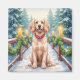 Snowy Bridge Boykin Spaniel Christmas Art Magnet