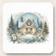 A serene snowy cottage glows beneath a star-lit winter sky, framed by twinkling trees, soft lantern light, and delicate botanical flourishes in muted blues, creams, and gentle golds. The scene blends cozy cottagecore charm with whimsical holiday warmth, wrapping the viewer in a nostalgic, storybook mood. Frosted evergreens, soft snowfall, and graceful florals create an enchanting, peaceful atmosphere perfect for lovers of dreamy folk aesthetics and soft watercolor winter themes. AI generated artwork.