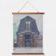The polyester fabric displayed many wrinkles and several sharp creases throughout. At the bottom of the tapestry, I noticed a bulge in the fabric because it was not pulled tight enough before being connected to the wooden boards. It took me over an hour to spay water on the tapestry before putting it on an ironing board where I used a warm iron over a polyester cloth to remove the wrinkles and creases in the material. I was able to get out the wrinkles and creases that made that tapestry look as beautiful as its picture.