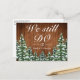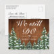 Wedding anniversary "We Still DO" invitation postcard. Rustic brown wood, snowing background and snowy forest. Cozy vintage country style. More items are available in this style in our store. You can edit the design further, change colours, fonts and add extra text by clicking "customize further" link.