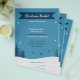 A charming Christmas Market Flyer in blue tones featuring a snowy landscape and its fir trees, some snowflakes and stars. Simply customize texts and use it for your local Xmas events. You can also use it as party invitation or dinner!