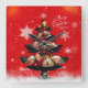 Snowy Merry Christmas Family Photo Tree Square Wall Clock