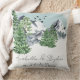 Snowy Mountain Landscape with Pine Forest Trees Throw Pillow