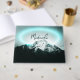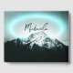 Snowy mountain mysterious blue neon light monogram guest book