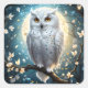 Snowy Owl And Moon With Sparkle, Square Sticker
