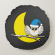 Snowy Owl in a New Moon Winter Night Round Pillow