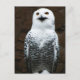 Snowy Owl - Portrait of a snowy owl standing on a log.