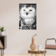 This beautiful poster print features a close up photograph of the stunning snowy owl. A young female white owl, she has a round head with white face, black beak and beautiful yellow eyes. The plumage of females and young snowy owls is more distinctive than that of the male of the species with black horizontal bars or speckles. Male snowy owls can be almost pure white.