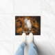 This pair of snowy white owls ask the question of "Who's There" at your doorway. They're festive for Halloween in cream against orange and black but are generic enough to work for the whole harvest season. These vintage owls are perched against orange swirly damask and the ghosted remains of autumn leaves. This design might help get you in the mood for crunchy leaves, spiced hot cider, pumpkins, cooler crisp air, and the fall season. The owls are from a vintage botanical illustration in the public domain.