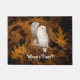 Snowy Owl Who's There Orange Damask Halloween Doormat