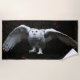 Snowy Owl With Open Wings - Photograph of a snowy owl standing on a log with wings spread and looking directly at the camera.