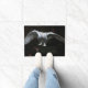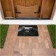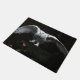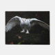 Snowy Owl With Open Wings - Photograph of a snowy owl standing on a log with wings spread and looking directly at the camera.