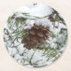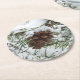 Snowy Pine Cone I Winter Nature Photography Round Paper Coaster