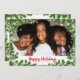 Happy Holidays photo card with green tree pine needles and white snowflake border around your favourite family photo. Created by © Lesruba Designs.