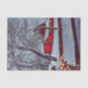 Snowy Red Barn with Christmas Lights on Fence Tissue Paper