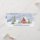 These adorable winter greeting card feature a red A-frame cabin the winter snow with text that says "warm winter wishes." The back has a snowy hill with space to write in your own message.