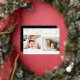 Simple and modern holiday card design features two of your favourite photos with an offset alignment, framed by falling snowflakes. "Peace on Earth" appears in gold foil casual handwritten script lettering, with your family name and the year at the lower left corner. A unique contemporary design in a horizontal or landscape layout for an on-trend holiday look.