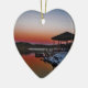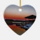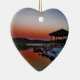 Snowy Sunset at Lake Arrowhead dock Ceramic Ornament