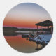 Snowy Sunset at Lake Arrowhead dock Classic Round Sticker