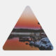 Snowy Sunset at Lake Arrowhead dock Triangle Sticker