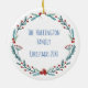 Unique in the world, this Robert Frost poetry Christmas ornament features my own original art -- hand-painted watercolor pine trees against a snowy blue and white background. The text quotes Frost's poem "Stopping By Woods on a Snowy Evening" -- "And miles to go before I sleep." You may change it if for some reason you prefer something else. Personalization goes on the reverse side in whimsical typography. Beautiful for literary fans and poetry lovers, also anyone who loves winter art.