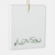 This charming ceramic Christmas ornament features a hand-drawn style sketch of a serene snowy village scene, complete with houses and evergreen trees nestled on gentle slopes. The square white ceramic provides a clean backdrop for the festive winter landscape. Perfect for adding a touch of rustic holiday charm to your Christmas tree.