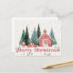 Colorful vintage Christmas postcard featuring a snowy village, Santa Claus, and a cheerful snowman. Perfect for sending festive greetings or as a collectible holiday keepsake