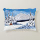An accent pillow with a beautiful winter scene including snowy mountains, rustic cabin and snow covered evergreens. Text can be personalized or deleted. Original artwork by W.B.