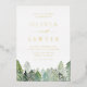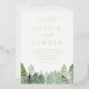 Celebrate your winter wedding with this elegant invitation featuring watercolor evergreen trees and softly falling snow. With a QR code included, guests can easily access your digital RSVP or wedding website. Choose from shimmering gold, silver, or rose gold foil text to add a luxurious, personalized touch. Customize with your names, date, and venue details. This winter wedding invitation is perfect for rustic, woodland, or mountain weddings seeking timeless sophistication.