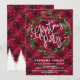 Snowy Winter Red Floral Wreath Flannel Christmas Invitation