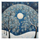 White Snowy Winter Forest and Moon Poster - modern housewarming gift for nature lovers.
