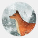Snowy Woodland Mountain Forest Red Fox Classic Round Sticker