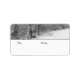 This beautiful image of a forest in winter covers the top of a medium-sized holiday gift tag label with a black dividing line across the middle and the words “to” and “from” written on the bottom with a white background. The photo was taken in January 2010 after a snow storm and a very cold winter night left tiny little icicles covering every tree branch the next morning. The text can be personalized with your own message or removed if you’d like to order blank labels and the background colour can be changed as well. Matching cards, stamps, and address labels are also available in my store.