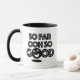 So Far Ooh So Good Happy Mug. The art displays a bold black inline font with a happy face designed as part of the word "good". Show off you're positive progress to others by sipping your best-loved hot beverage from this mug showing the cheerful So Far Ooh So Good print on both sides. Makes an excellent gift for family or friends. Thank you for the support and visiting my store - UniquelyDistinct. Feel free to transfer this design on other Zazzle products.